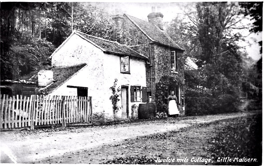 Twelve Mile Gate Cottage (see map for the location of the building, now demolished) was so called because it was exactly twelve miles from there to Worcester Cross, which is the crossroads right at the top of Broad Street, at its junction with High Street, St. Swithin’s Street and The Cross. Twelve Mile Gate Cottage had no electricity or running water, but it did have two gas mantles in the downstairs front room. The outside wall of the front room had a post box built into it. An outside privy was not uncommon then, but theirs was on the other side of the road, down some quite steep steps and several yards further on into the large garden area.