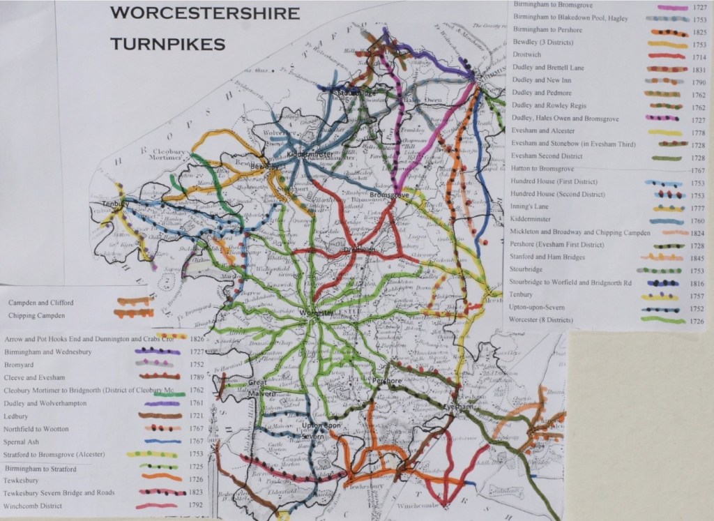 Locally, Welland was well served by turnpiked roads. The Upton-upon-Severn Trust included responsibility for Welland as part of the Worcester hub network, and the Ledbury Turnpike Trust (part of the Hereford hub network) linked into Worcester’s hub.